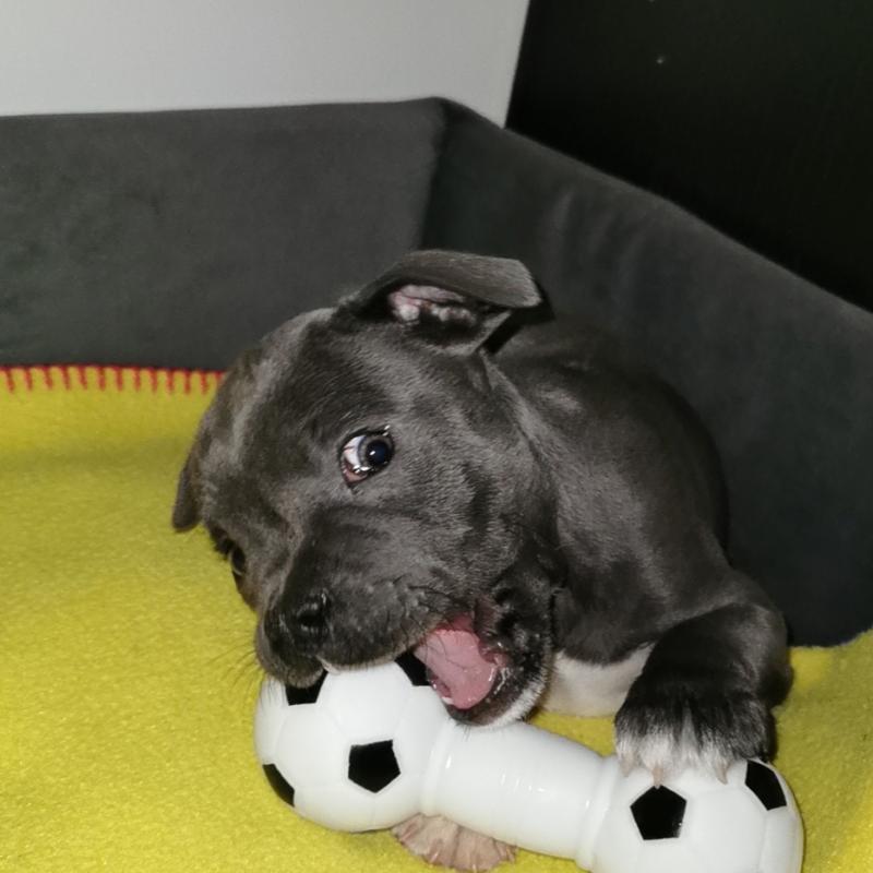 BEIM 0 Jahr(e), 8 Monat(e) und 16 Tag(e), Vibe's, Staffordshire Bullterrier männlich , gewogen 14 kg.